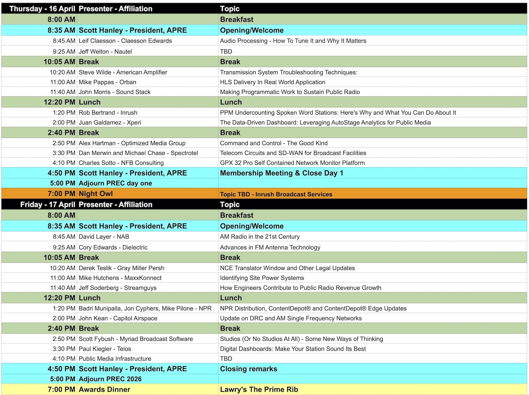 Online Registration for the Public Radio Engineering Conference, includes full online access to the PREC26 Online Conference